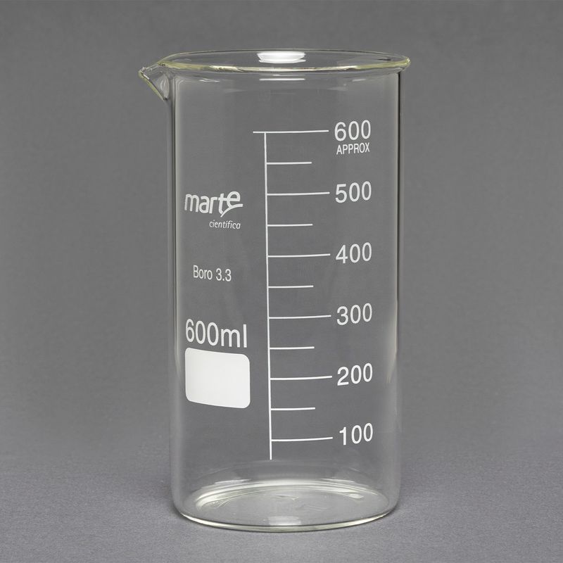 O Béquer de Vidro Forma Alta Graduado da Marte Científica é uma vidraria versátil projetada para dissolução, mistura, aquecimento e transferência de líquidos, sendo amplamente utilizada em laboratórios de pesquisas científicas e educacionais.