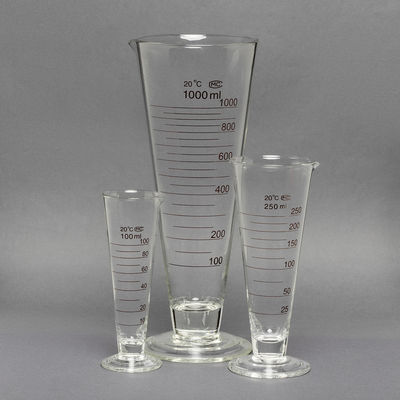 O cálice possui um design clássico, com um corpo cilíndrico e um bico vertedor que facilita o despejo de líquidos sem derramamentos, além de uma base plana e estável, proporcionando segurança durante o uso. A graduação é clara e precisa, permitindo medições confiáveis de volume, embora não seja tão exata quanto instrumentos volumétricos como provetas ou balões volumétricos. Disponível em uma ampla faixa de volumes, ele é fabricado em vidro borossilicato 3.3, conhecido por sua alta resistência térmica e química, garantindo que o mesmo possa suportar temperaturas extremas e exposição a diversos produtos químicos sem sofrer danos ou deformações. Sua fabricação segue rigorosos padrões internacionais de qualidade, tornando-o uma escolha ideal para os mais diversos tipos de laboratórios.