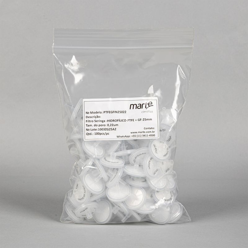 Os Filtros de Seringa Dupla Camada da Marte Científica são projetados para aplicações laboratoriais que exigem filtração eficiente, confiável e de alto rendimento, especialmente em amostras que contêm partículas ou resíduos em suspensão. Com design de dupla camada (pré-filtro + membrana principal), esses filtros oferecem maior capacidade de retenção de partículas, maior volume de amostra processável e vida útil estendida da membrana principal, sem comprometer a integridade dos resultados. O invólucro externo em Polipropileno (PP) garante excelente resistência química e mecânica. Seu design funcional inclui entrada fêmea luer-lock e saída macho luer-slip, assegurando conexão firme e compatibilidade com a maioria das seringas e sistemas de filtração do mercado. Os filtros são não estéreis, destinados ao uso único e produzidos sob condições controladas e otimizadas, assegurando qualidade, pureza e desempenho superiores.