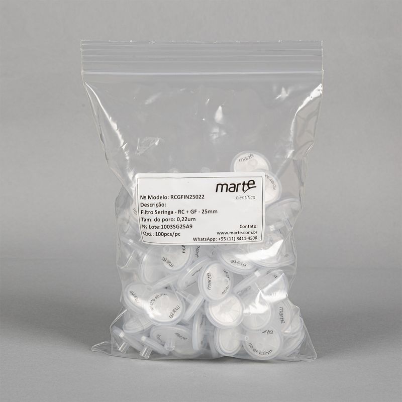 Os Filtros de Seringa Dupla Camada da Marte Científica são projetados para aplicações laboratoriais que exigem filtração eficiente, confiável e de alto rendimento, especialmente em amostras que contêm partículas ou resíduos em suspensão. Com design de dupla camada (pré-filtro + membrana principal), esses filtros oferecem maior capacidade de retenção de partículas, maior volume de amostra processável e vida útil estendida da membrana principal, sem comprometer a integridade dos resultados. O invólucro externo em Polipropileno (PP) garante excelente resistência química e mecânica. Seu design funcional inclui entrada fêmea luer-lock e saída macho luer-slip, assegurando conexão firme e compatibilidade com a maioria das seringas e sistemas de filtração do mercado. Os filtros são não estéreis, destinados ao uso único e produzidos sob condições controladas e otimizadas, assegurando qualidade, pureza e desempenho superiores.