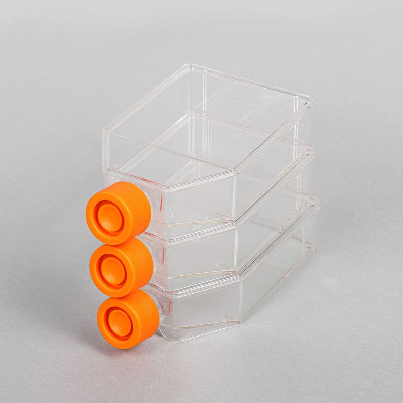 Disponível em quatro volumes (T25, T75, T175 e T225), são estéreis, empilháveis, não autoclaváveis, resistentes a temperaturas de até 60°C, livres de DNase, RNase e pirogênios, além de apresentar graduações bilaterias moldadas em relevo, garantindo segurança e confiabilidade durante a manipulação.