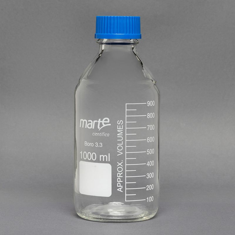 O Frasco Reagente Transparente Graduado com Tampa de Rosca Azul da Marte Científica é uma vidraria desenvolvida para armazenamento, preparo e manipulação de soluções em laboratórios de ensino, pesquisa e análises em geral.