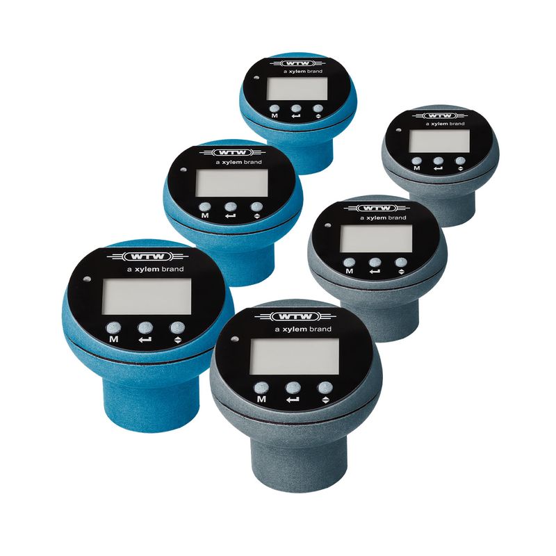 Seis unidades do sensor Oxitop-i (03 cinzas e 03 azuis).