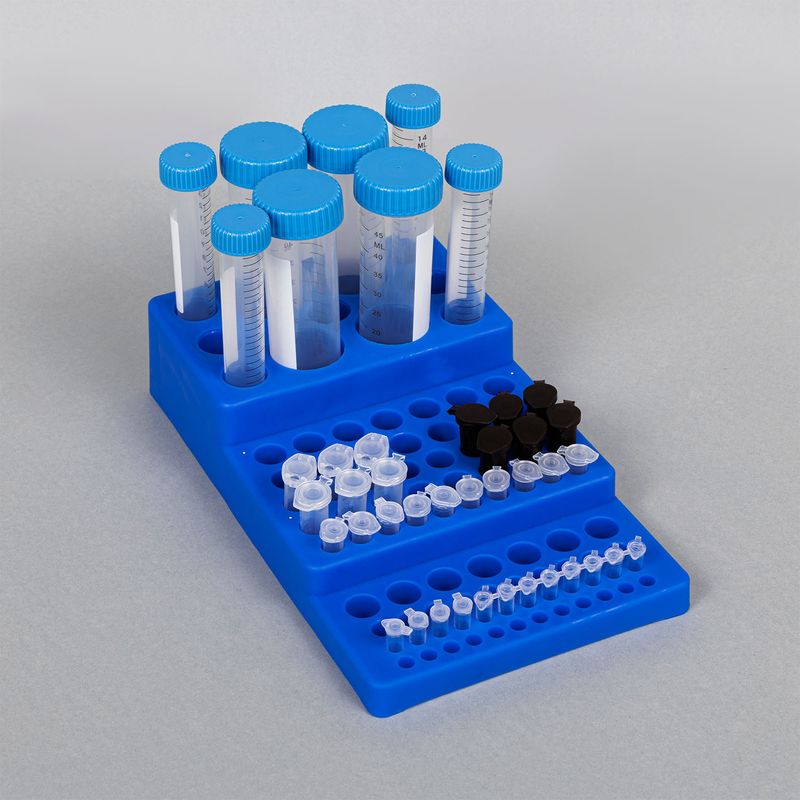 Pode ser utilizado com diferentes tipos e volumes de tubos (ex: 0,5 mL, 1,5 mL, 15 mL, 50 mL), além de ter alta resistência a produtos químicos, como álcoois, solventes orgânicos e detergentes neutros.