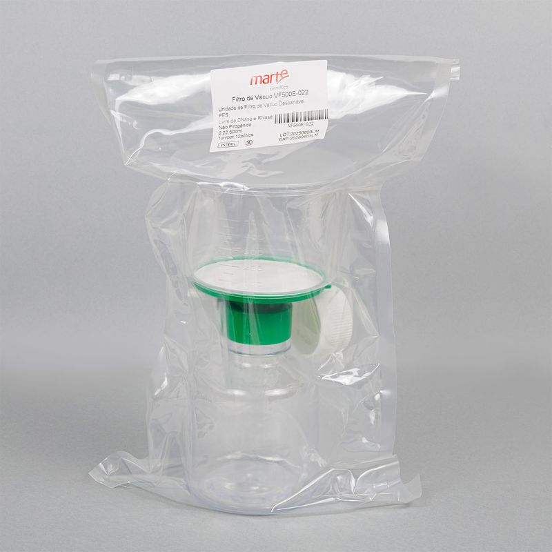 Disponível em três opções de volumes (250, 500 e 1.000mL) e duas opções de porosidade (0,22 ou 0,45 µm), são estéreis, descartáveis e livres de DNase, RNase e pirogênios, garantindo segurança e confiabilidade durante a manipulação.