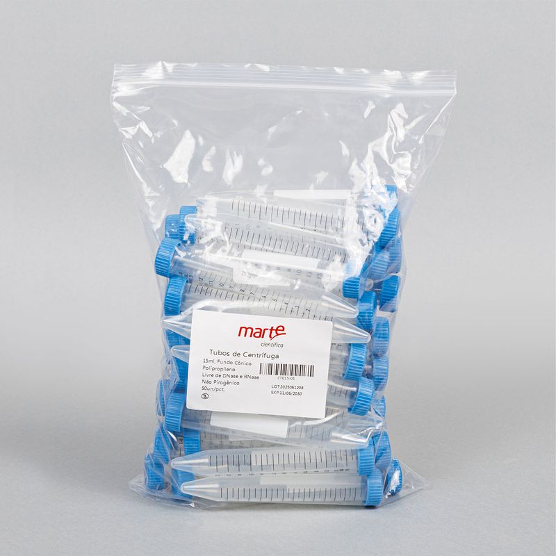 Os tubos são descartáveis, não estéreis, autoclaváveis, livres de DNase, RNase e pirogênios, além de apresentar graduações claras e precisas, garantindo higiene, segurança e confiabilidade durante a manipulação.