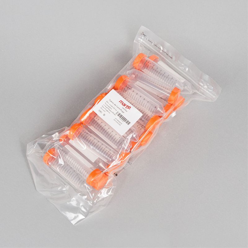 Os tubos são descartáveis, estéreis, autoclaváveis, livres de DNase, RNase e pirogênios, além de apresentar graduações claras e precisas, garantindo higiene, segurança e confiabilidade durante a manipulação.